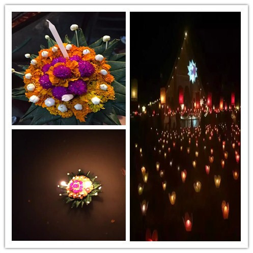 龙舟节晚上在湄公河放了生平第一只水灯