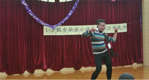 Cry Cry爵士舞作为开场,把晚会带入了热烈的气氛中,越南留学生的吉他弹唱、金融班的印度舞、泰国留学生的即兴舞蹈将晚会渐渐推入高潮,期间,丽江少数名族文化传习会的纳西族舞蹈和13汉教班同学的献唱作为客串节目出场,为晚会增添了不少亮点。活动过程中穿插的有奖竞答环节让同学们对中外文化有了更深了解。在柔美悦耳、极具民族风采的一曲巴乌演奏之后,中外学生《朋友》合唱让本次晚会进入尾声。
