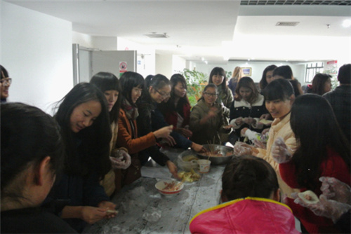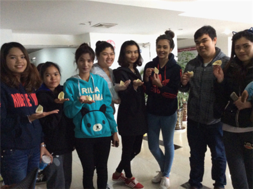为加强中外学生的互动与交流,在晚会开始之前,按照语伴分组名单,2013级金融学班的同学们还邀请了自己的语伴们在留学生公寓公共厨房进行了有趣的传统美食包饺子活动。大家在包饺子的欢声笑语中拉近了彼此之间的距离,不时还在饺子中放入一枚硬币,为美食和文化的分享增添了不少惊喜和期许。