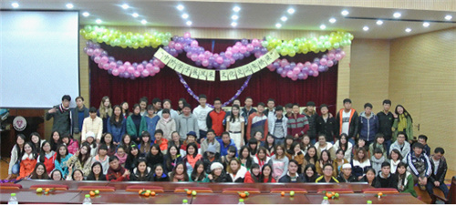 2014年12月7日,由华文、国语学院主办,2013级金融学班承办的小语种语伴活动晚会在同析2号楼311报告厅成功举办。本次活动充分结合我院国际化办学的特色和优势,以“中外学子展风采 文化交流架桥梁”为主题,旨在为中、泰、越三国学生搭建一个语言文化学习和友谊共建的多元化平台,为泰国、越南等外国留学生在我校更好完成学业创造条件,同时也为2013级金融学班2015年度留学东南亚作准备。此次活动吸引了2013级金融学班的全体同学以及来自泰国、越南等外国留学生、老师共计120人参加。
