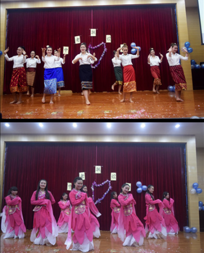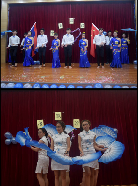 伴随着中国传统音乐的响起,老挝留学生身着中国民族服装表演中国传统舞蹈,为联谊会拉开帷幕,欢快的音乐点燃了在场所有人的热情,一个个的完美演出也使整场活动气氛活跃,彰显留学生与中国学生的友好情谊。
