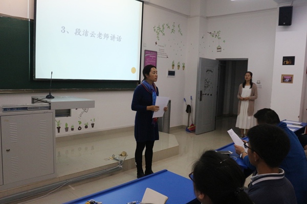 团委书记潘梦雯阐述了社团成立的初衷,提出了对同学们未来发展的建议,表达了对社团结合学院办学特色而发展的期望。