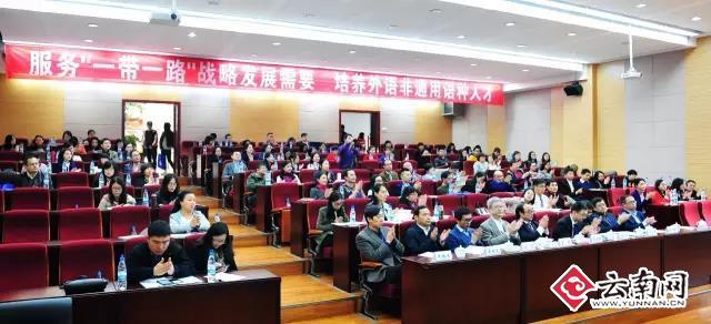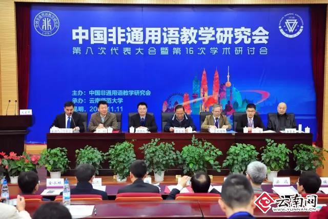 2016年11月11日至11月12日,由中国非通用语教学研究会主办,云南师范大学承办的中国非通用语教学研究会第八次代表大会暨第16次学术研讨会在云南师范大学召开。会议主题是服务于“一带一路”战略发展需要的外语非通用语人才培养与学科建设。在为期两天的会议中,与会代表结合本次会议主题,就“一带一路”战略背景下的非通用语教学、科研、学科建设、师资队伍建设、人才培养等议题展开深入的交流研讨。大会进行了中国非通用语教学研究会理事会换届选举。来自北京大学、北京外国语大学、解放军外国语学院等全国41所非通用语教学和研究单位的120多名专家学者参加了本次会议。