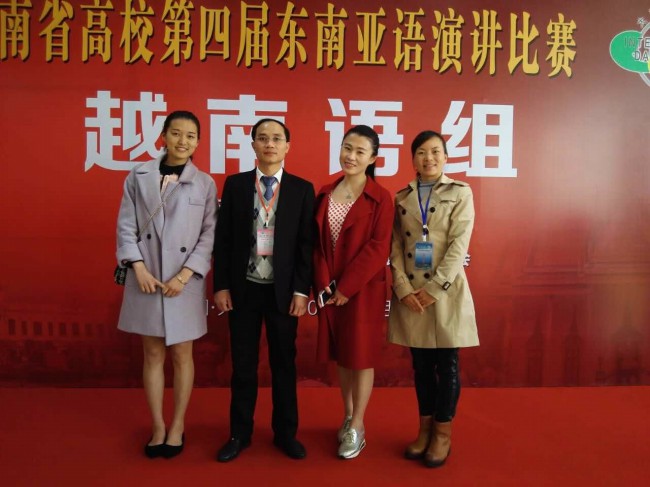 我校越南语选手与评委老师合影
