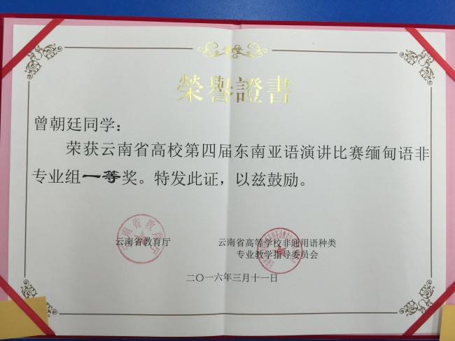 缅甸语获奖选手