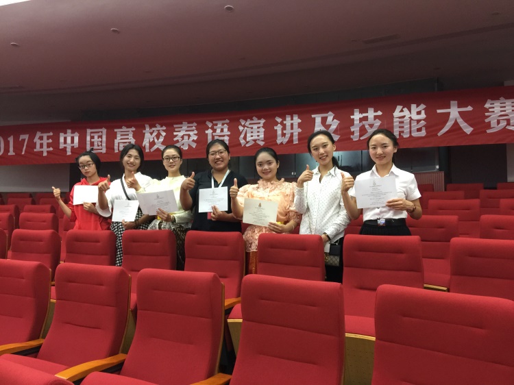 我院赵彩琳、森晖、杨玉娇、李静、周亦真和王凌琪六位同学于5月5日参加了2017年中国高校泰语演讲及技能大赛并载誉而归。